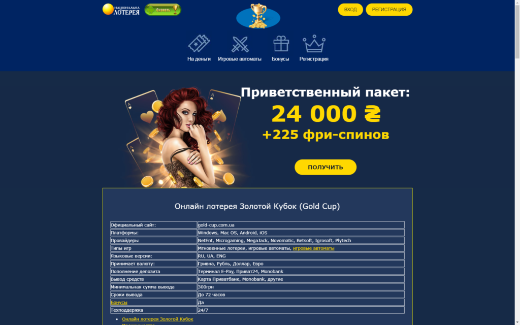 В каталозі бонуси в УНЛ золотий кубок найщедріші азартні симулятори, вони порадують гостей ігрового майданчика великою віддачею. Почати грати на гроші можна після реєстрації. Поповніть рахунок на сайті золотий кубок, отримаєте вітальний бонус. Гості закладу постійно нагороджуються азартної платформою бонусами за активності. Тут видають фріспіни. Ігромани обожнюють брати участь в місцевих турнірах. Висновок заробленого на азарті відбувається оперативно. При необхідності клієнт може звернутися в супорт і отримати оперативну допомогу.