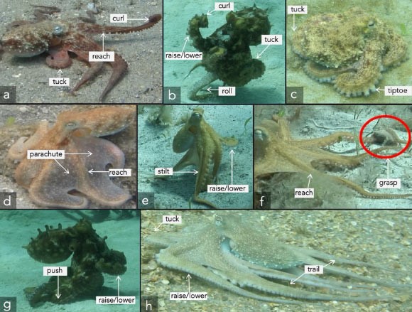 Дослідження також виявило, що восьминоги використовують руки з обох боків тіла однаково, але передні лапи використовуються значно частіше, ніж задні. Це, ймовірно, пов’язано з тим, що передні лапи краще підходять для дослідження навколишнього середовища, в той час як задні – для підтримки руху. Зокрема, задні руки найчастіше використовуються для перекату і ходулі, що дозволяє восьминогу швидко переміщатися по морському дну.