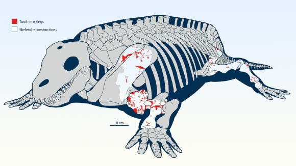 Дослідники з Університету Торонто Місіссауга проаналізували скам’янілі останки трьох молодих особин Diadectes – раннього великого рослиноїдного хребетного. На кістках було виявлено численні виразні сліди зубів, що є незаперечним доказом хижацької харчової поведінки. На відміну від добре задокументованих слідів укусів з епохи Мезозою, де домінували динозаври, це один із перших чітких прикладів такої взаємодії з Палеозойської ери, коли вперше з’явилися великі наземні хижаки та травоїдні.